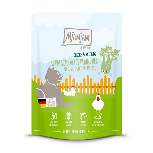 MjAMjAM - Quetschie - Chicks & Friends schmackhaftes Hühnchen an gedünstetem Sellerie